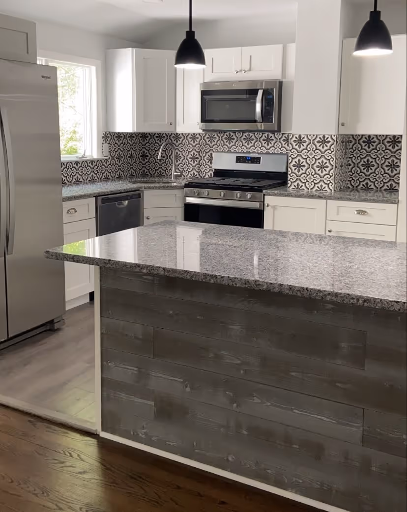 We handle full home remodeling and general contracting, including kitchens, bathrooms, roofing, flooring, decks, siding, and licensed plumbing and electrical work.